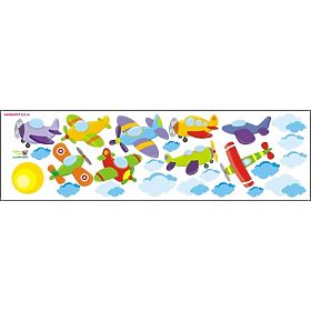 Samolepící dekorace Letadla o rozměru 0,5, 0,3 metr čtvereční je tvořena motivy letadel s mráčky v příjemných teplých pastelových barvách. Decentní a univerzální dekorace do pokojíčků dětí všech věkových kategorií.
