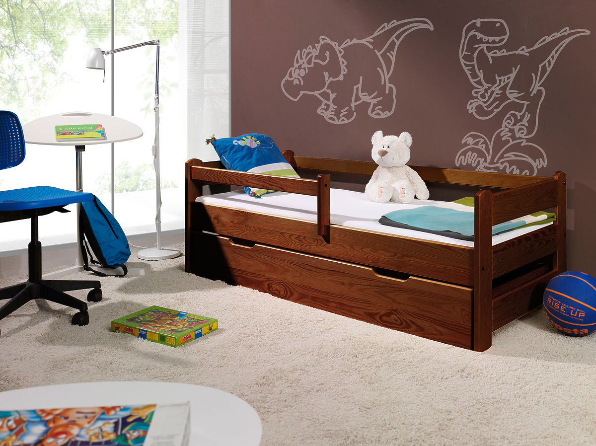 Dětská postel se zábranou - moření ořech , je precizně vyrobena z přírodního borovicového dřeva. .. více