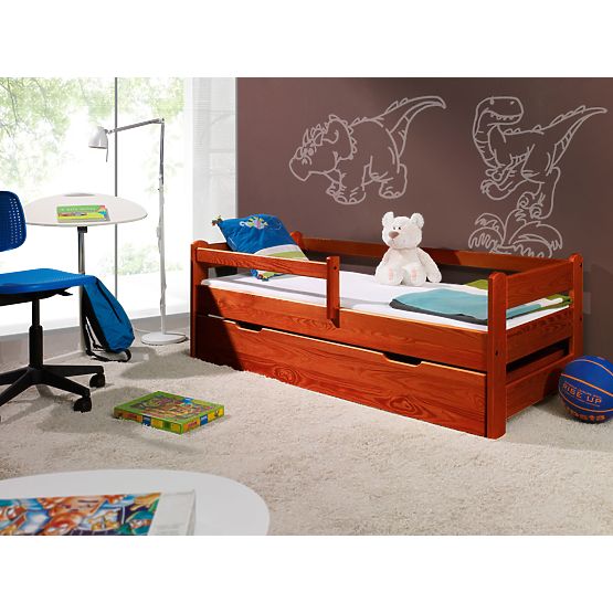 Dětská postel se zábranou - moření třešeň, je precizně vyrobena z přírodního borovicového dřeva. .. více