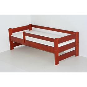 Dětská postel se zábranou - moření třešeň, je precizně vyrobena z přírodního borovicového dřeva. Lakovaná dvěmi vrstvami bezbarvého laku. Součástí postele je laťkový rošt z 10 lišt. Postel je balená na dva balíky s obrázkovým návodem. Postel je snadno smontovatelná za pomocí šroubů, kolíků které jsou součástí balení.