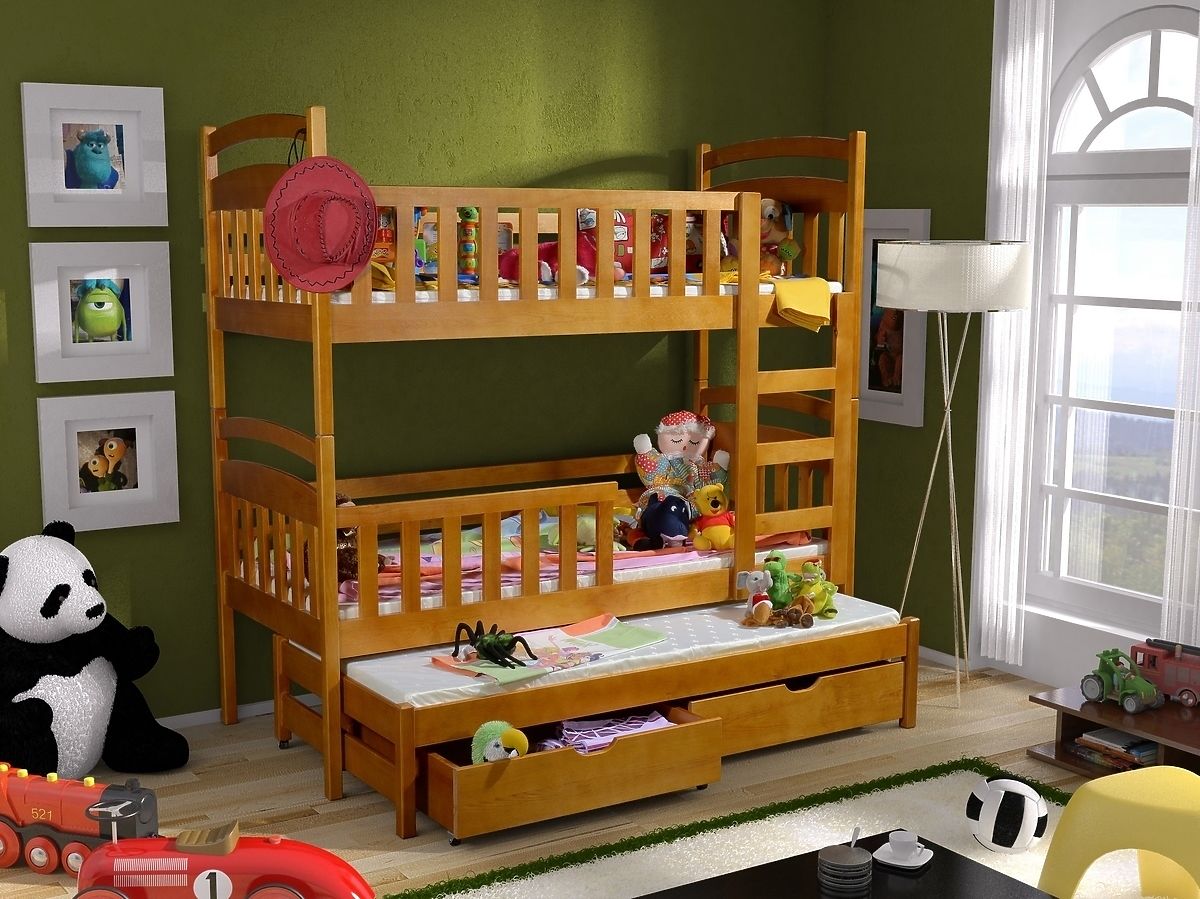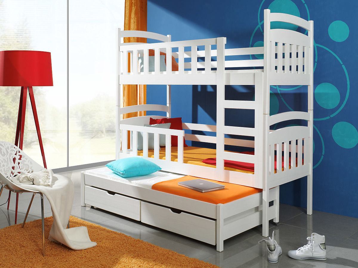 Postel Viky je patrová postel s přistýlkou, spodní matrace v rozměru 172 x 80 je výsuvná.