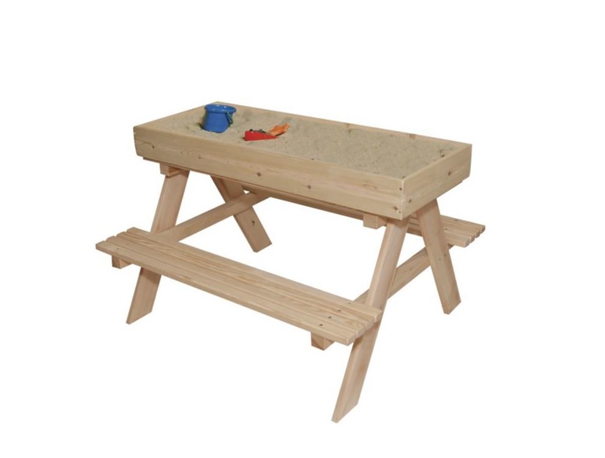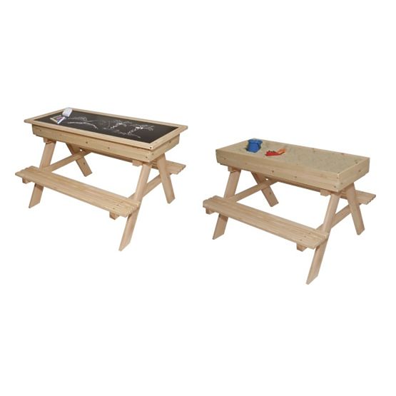 Praktický dřevěný zahradní set, který se dá využít jako stůl, tabule na kreslení a dokonce i pískoviště.