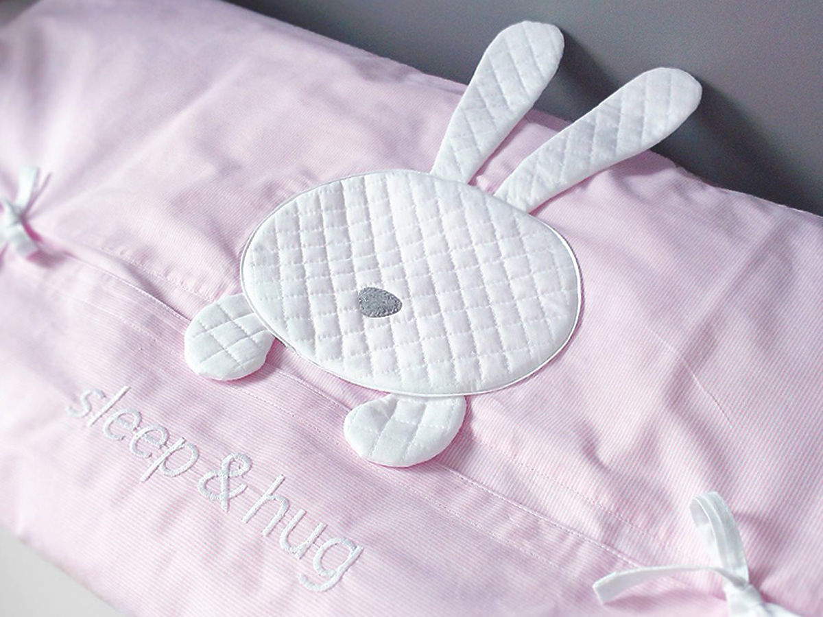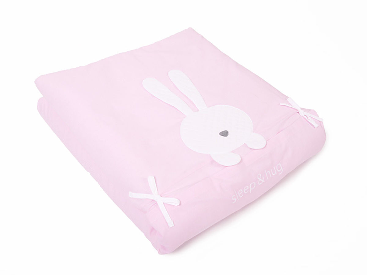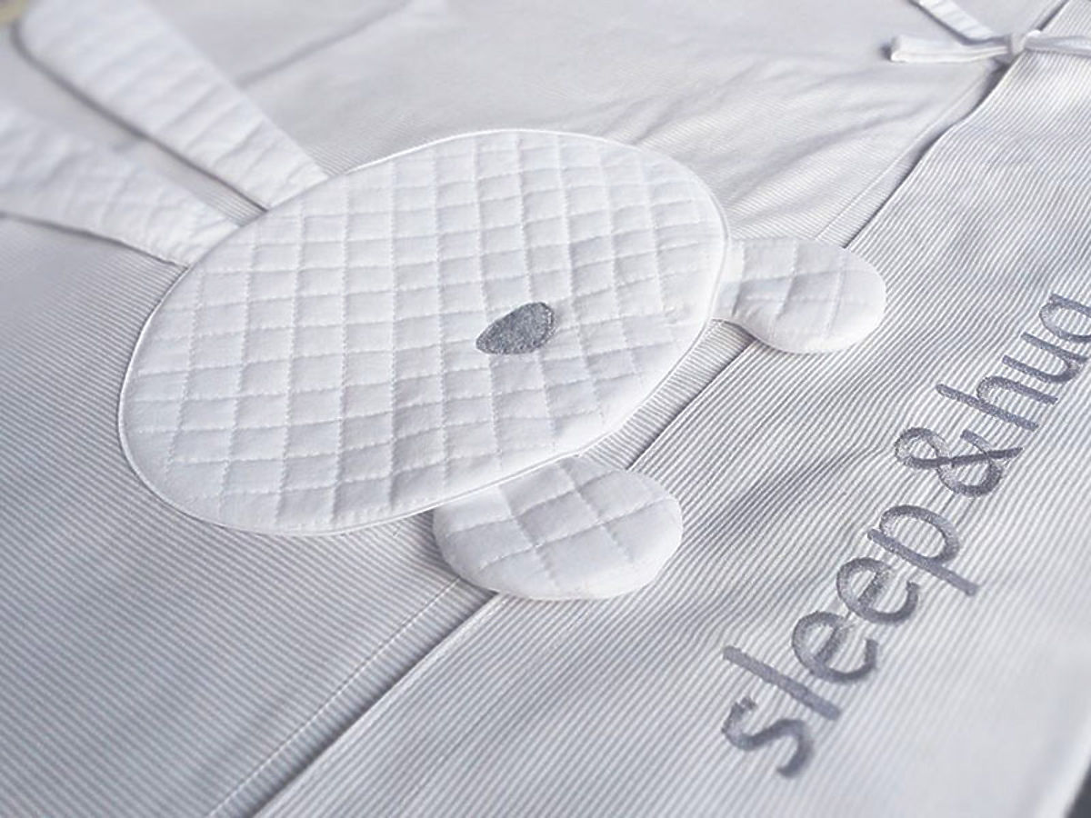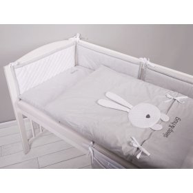 Roztomilá kolekce s krásným zajíčkem, který bude kontrolovat všechny miminka při jejich spánku. Děti si toto povlečení zamilují, odstávající měkoučké uši budou jejich oblíbenou hračkou v postýlce. Měkoučký, šedý nosík ozdobí jemné barvy povlečení. Mašličky v polovině povlečení nejsou jen jemnou dekoraci, ale také praktické. Výplň se vkládá uprostřed, zabraňuje tak vypadávání peřinky.
