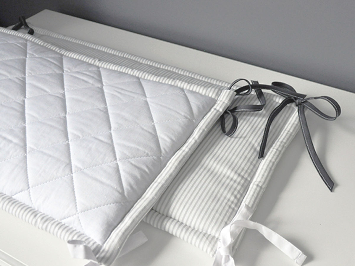 Jedná část mantinelu je prošívaná, další dvě jsou pruhované.