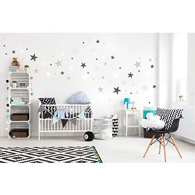Babynabytek.cz » Dekorace / Nástěnné a okenní / Samolepky na zeď / Dekorace na zeď - hvězdičky šedá/bílá