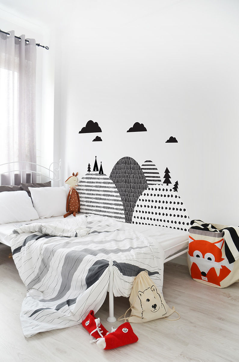 Dekorace za postel Hory Skandinávské, je jednoduše elegantní a velice vkusný moderní doplněk do každého dětského pokojíčku či do jakéhokoliv jiného pokoje.