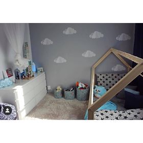 Samolepky na zeď jsou nejjednodušším a nejpohodlnějším řešením, jak vyzdobit dětský pokoj. Obláčky s 3D efektem jsou jemnou dekorací, zejména pokud je umístíte na bílou zeď. Vytvářejí iluzi prostornosti, jsou bílé se světle šedým potiskem.