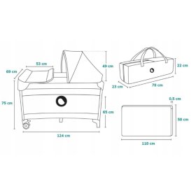 | Provedení postýlky: | s kolečky, s přebalovací podložkou, nastavitelný rošt, boční vstup, s moskytiérou |