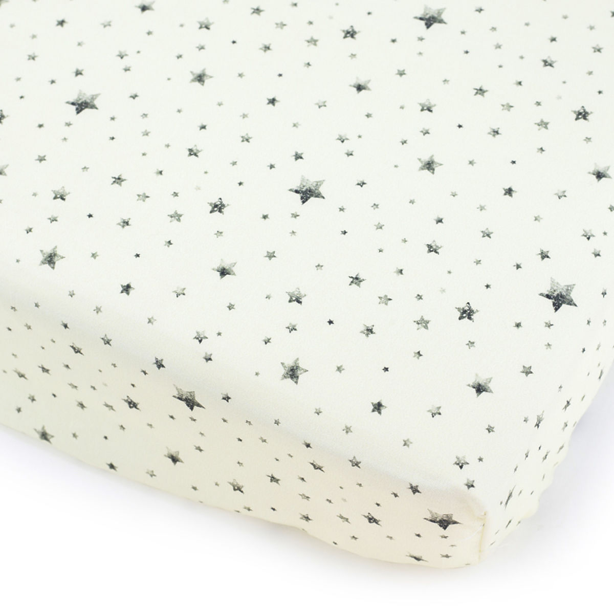 Bavlněné prostěradlo s jemným vzorem hvězdiček na béžovém pozadí.