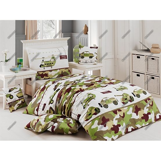Toto povlečení Matějovský má velmi zajímavý maskáčový vzor a motiv armádní tematiky. Vrchní i spodní stranu povlaku na přikrývku pokrývají krásné velké obrázky vojenských strojů v typických hnědozelených odstínech.