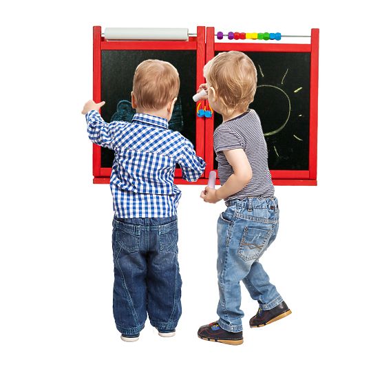 Dětská oboustranná, otvírací tabule na stěnu. Je vyrobena ze dřeva v červené barvě. Tabule je z jedné strany magnetická a z druhé strany křídová.