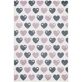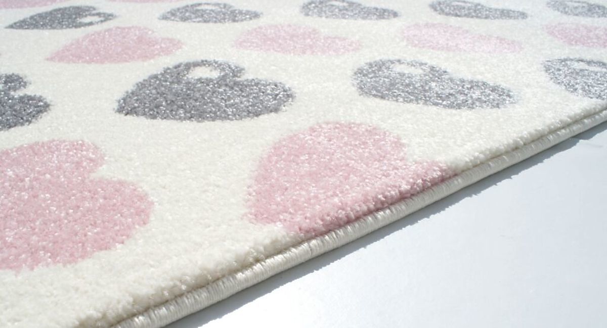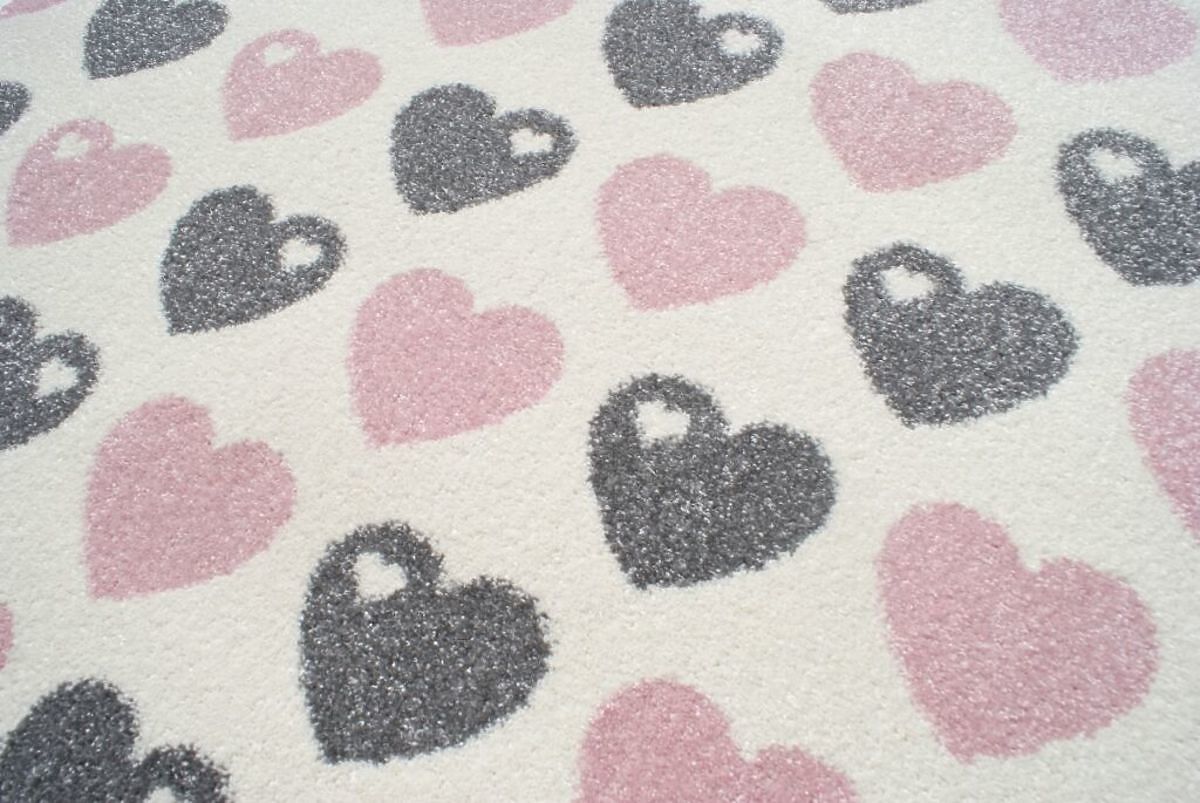 Babynabytek.cz » Dětský nábytek / Koberce / Kusové koberce / Dětský koberec srdíčka růžovo-stříbrno bílý