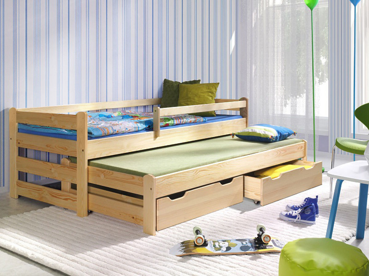 Dětské dvojlůžko Doplo se zábranou - borovice, je precizně vyrobena dvojpostel z přírodního dřeva. Dětská postel se zábranou je lakovaná dvěmi vrstvami bezbarvého laku. Součástí postele je laťkový rošt. Postel je snadno smontovatelná za pomocí šroubů, kolíků, které jsou součástí balení.