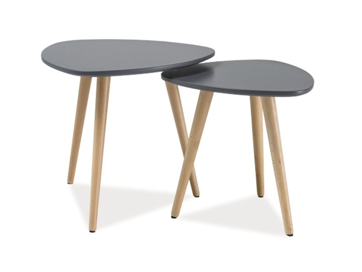 Elegantní konferenční stolky - komplet NOLAN A, šedá/buk. Sestava dvou elegantních konferenčních stolků v moderním severském stylu. Deska stolků je vyrobena z kvalitní MDF nohy stolků jsou vyrobeny ze dřeva v barvě buk.