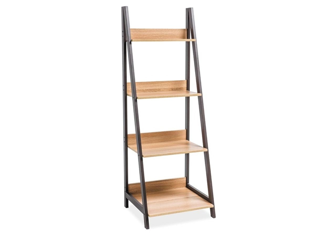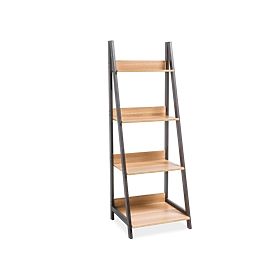 Stylový, jednoduchý ale praktický regál se čtyřmi poličkami. Zajímavá konstrukce nožek ve tvaru žebříku. Konstrukce je kovová tmavě hnědé barvy, deska z kvalitního MDF v barvě dub. Vhodný i pro menší pokoje. Možno kombinovat s Matis B.