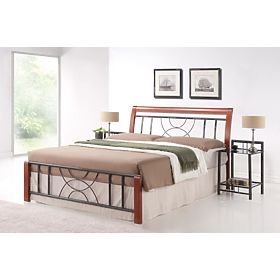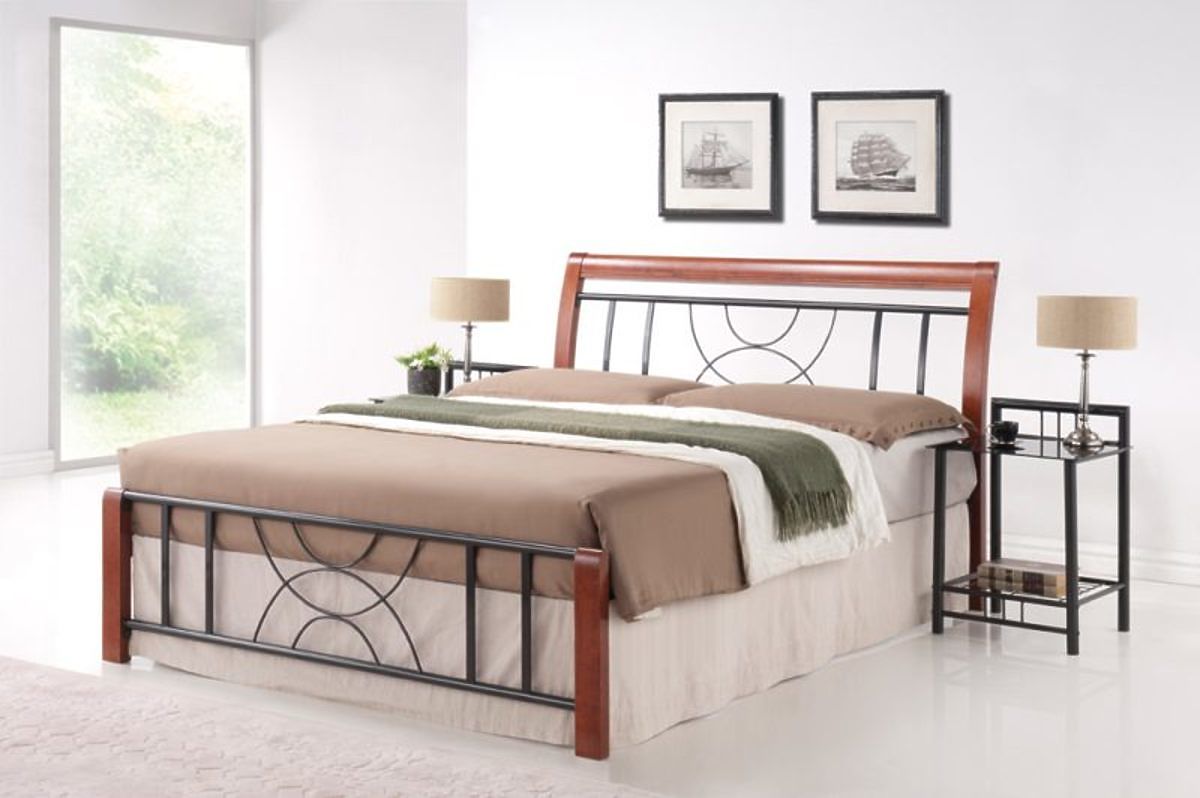 Krásná kovová postel CORTINA. Provedení postele je v černém kovu s kombinací masivního dřeva v barvě antická třešeň. V ceně postele je započítán rošt. Spací plocha postele je 180x200 cm. Matrace není součástí postele je třeba si ji doobjednat, doporučujeme rozměr 180x200cm.