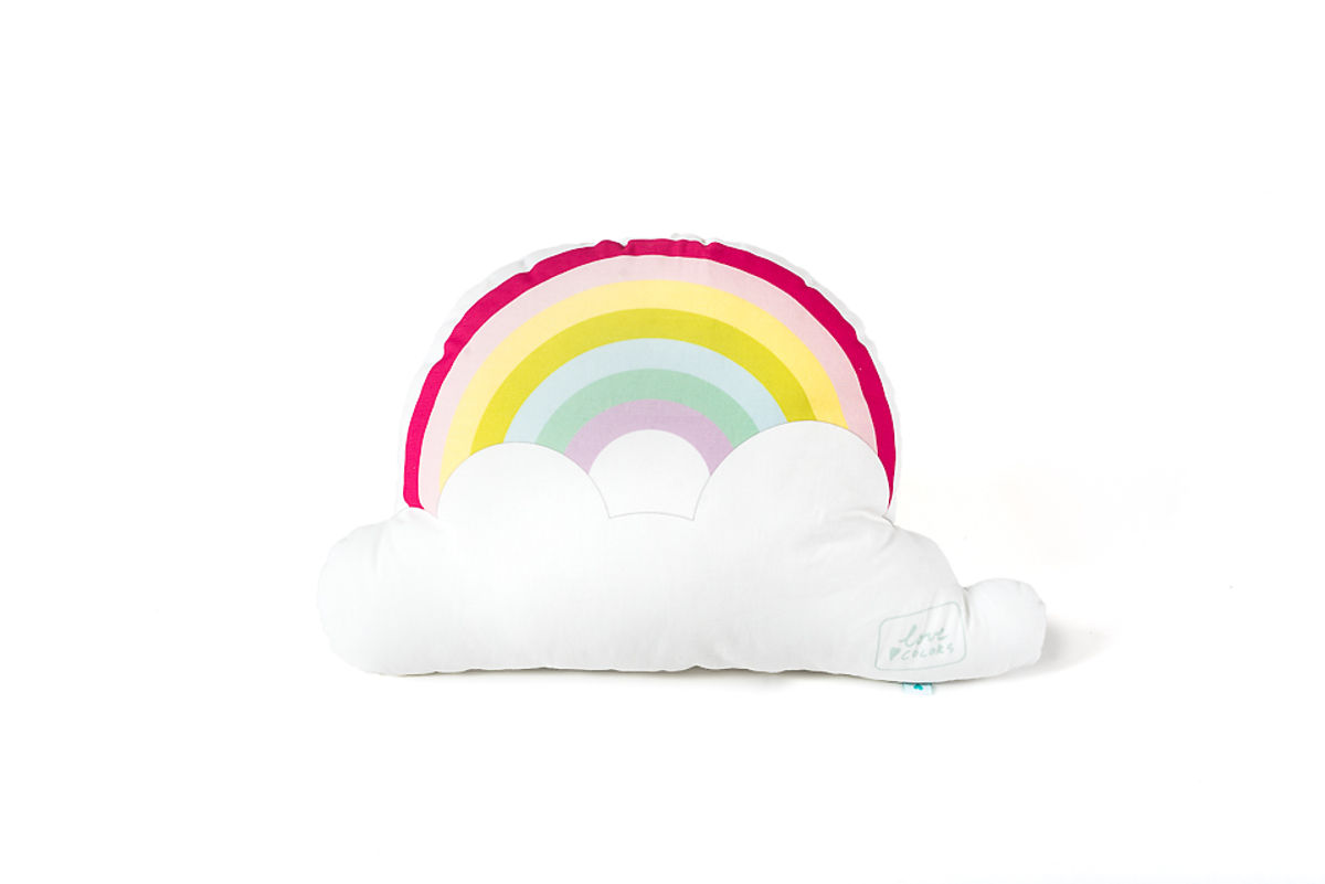 Už bylo dost dešťového období, ať máme duhu i v našich srdcích! Designový polštářek ve tvaru duhy je ideálním doplňkem do moderního dětského pokoje. Rozveselí nejen postýlku, ale i hrací koutek.Látka je natištěna digitální technologií na Slovensku, podle autorských návrhů designérky Julianna. Barva je netoxická, certifikovaná, vhodná i pro malé děti. Uvnitř polštářku je antialergické polyesterové duté vlákno, zašívání ručně, neviditelným stehem. Polštářek lze prát ručně nebo v pračce při 30 ° C na mírném programu.