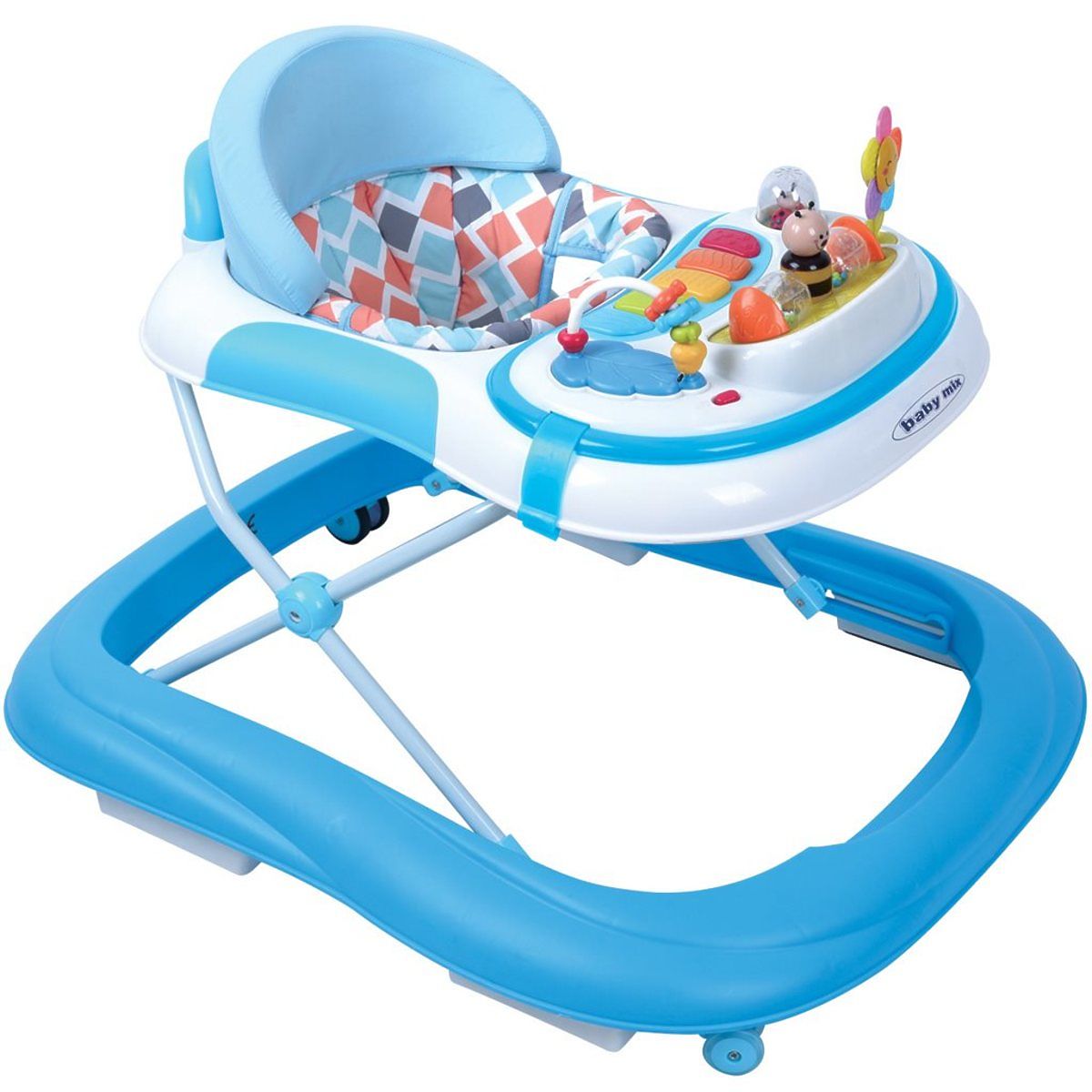 Dětské chodítko Baby Mix ve veselých barvách se čtyřmi kolečky. Chodítko je nastavitelné do několika poloh a má velice pohodlný potah, který lze vyprat a je v zadní části vyztužený. Vyrobeno z kvalitního plastového materiálu. Rozměry cca 75x70 cm. Baterie nejsou součástí balení. Nosnost do 12 kg.