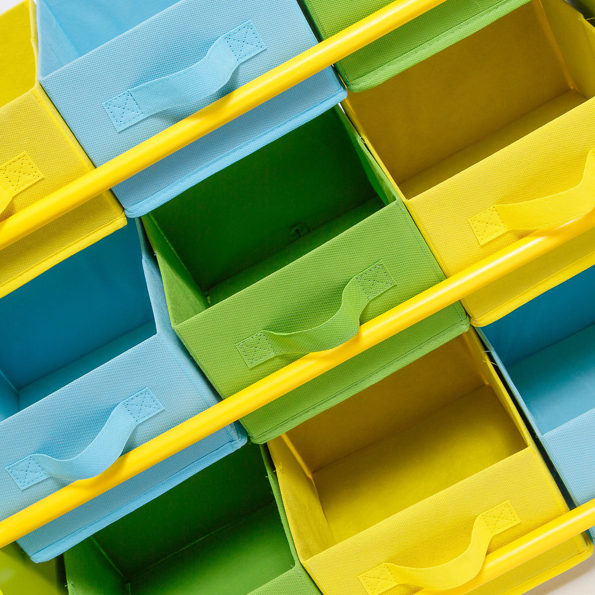 Obsahuje 9 úložných látkových boxů s poutkem ve třech barvách.