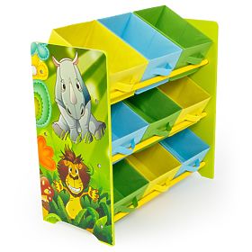 Dětský organizér na hračky s motivem zvířátek z džungle od německého výrobce. Tento krásný organizér je originálním doplňkem do dětského pokoje. Vhodný k uspořádání hraček. Je vyroben z kvalitního MDF dřeva se zaoblenými rohy pro vyšší bezpečnost vašich dětí.