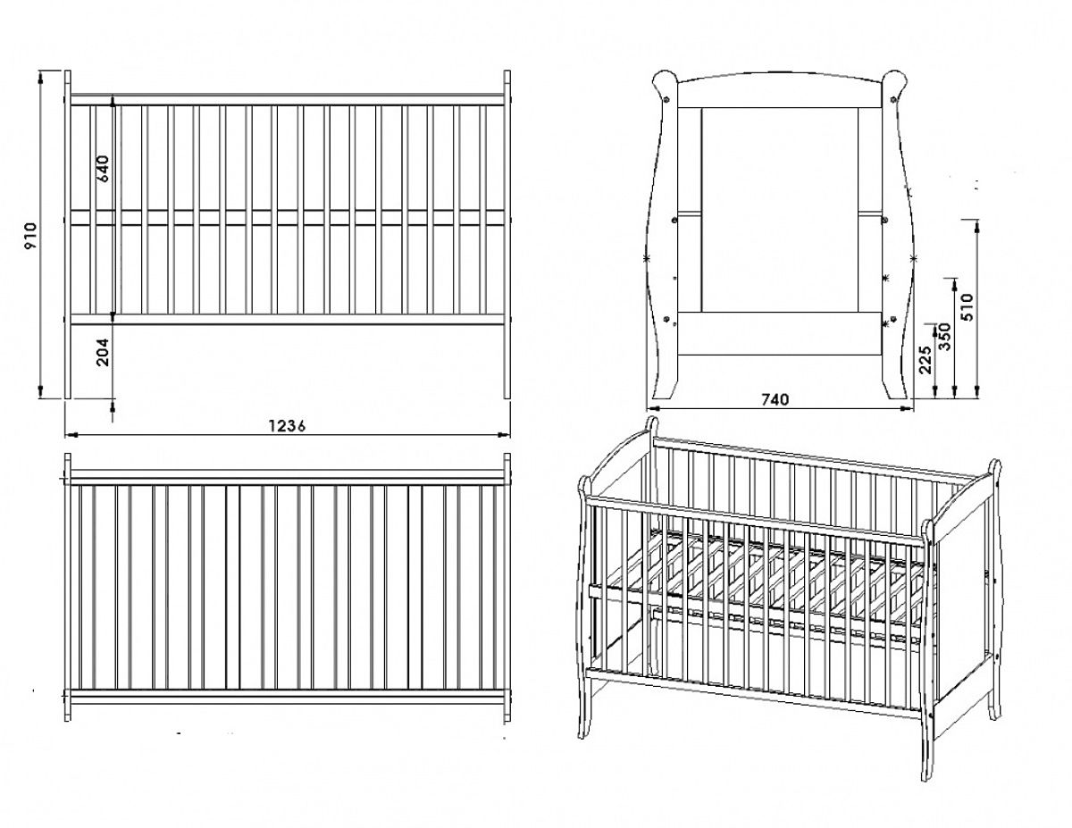 - boky postýlky jsou vyrobeny z kulatých příček o průměru 16 mm rozmístěných vedle sebe ve vzdálenosti 56 mm