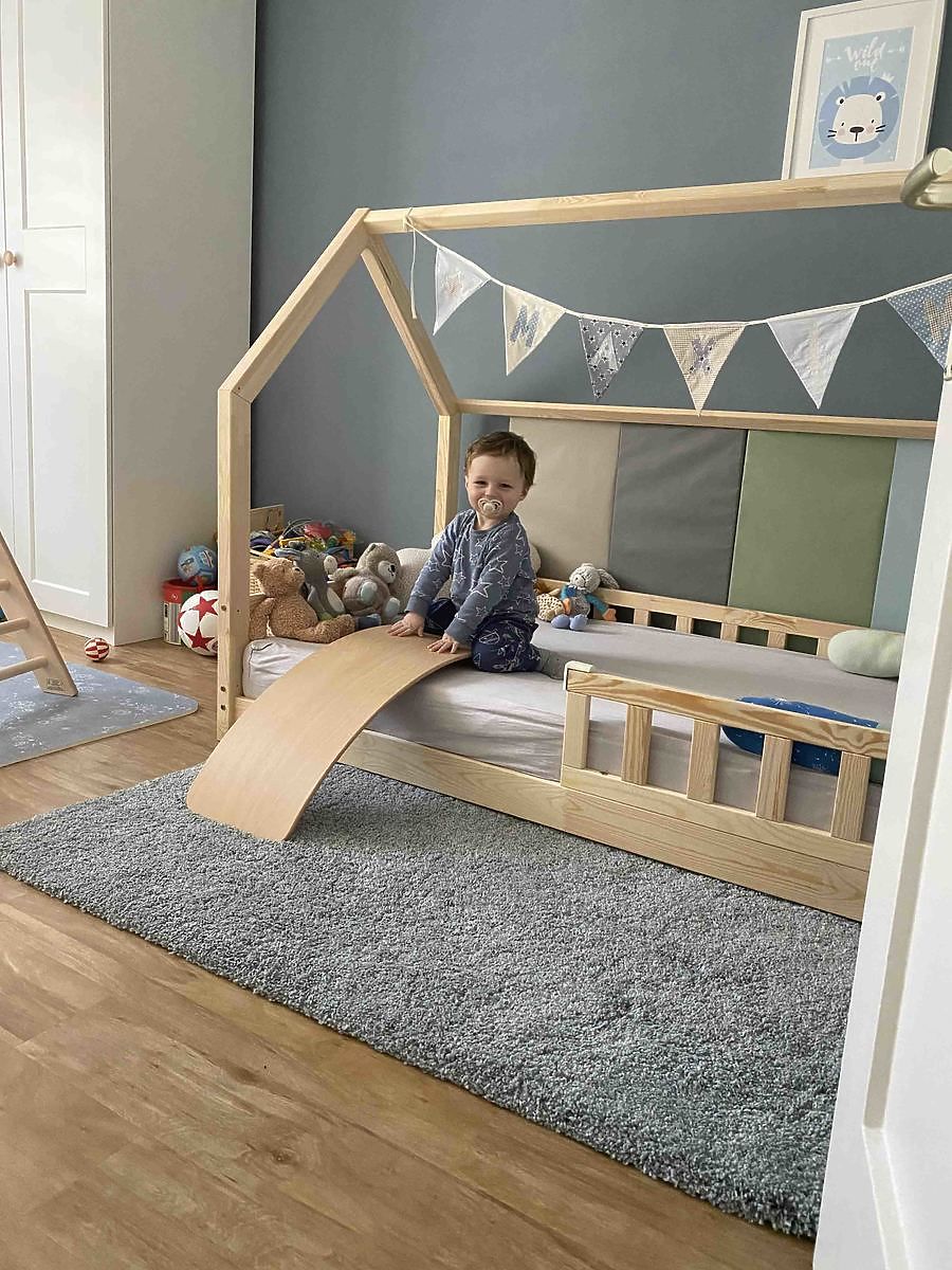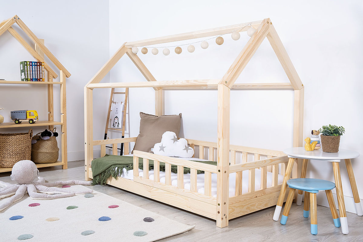 | Provedení postele: | se zábranou, s domečkem, s roštem, bez potisku, montessori - nízké |