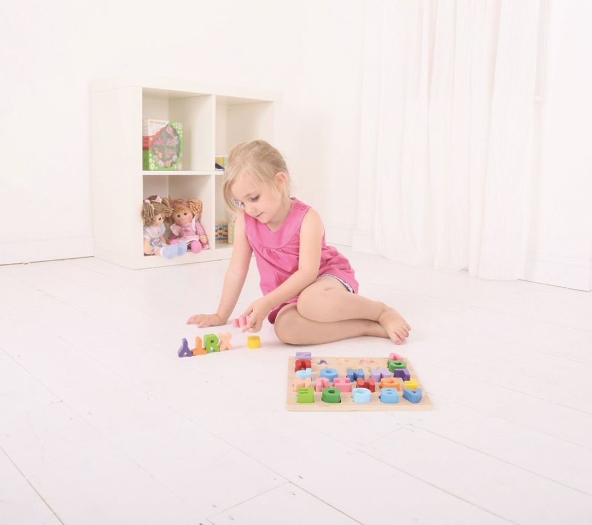 - barevná vkládačka bez úchytek pro děti pro první seznámení s písmenky