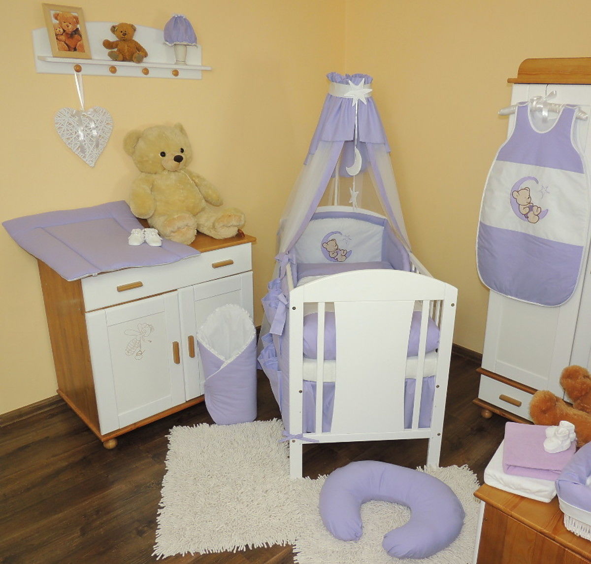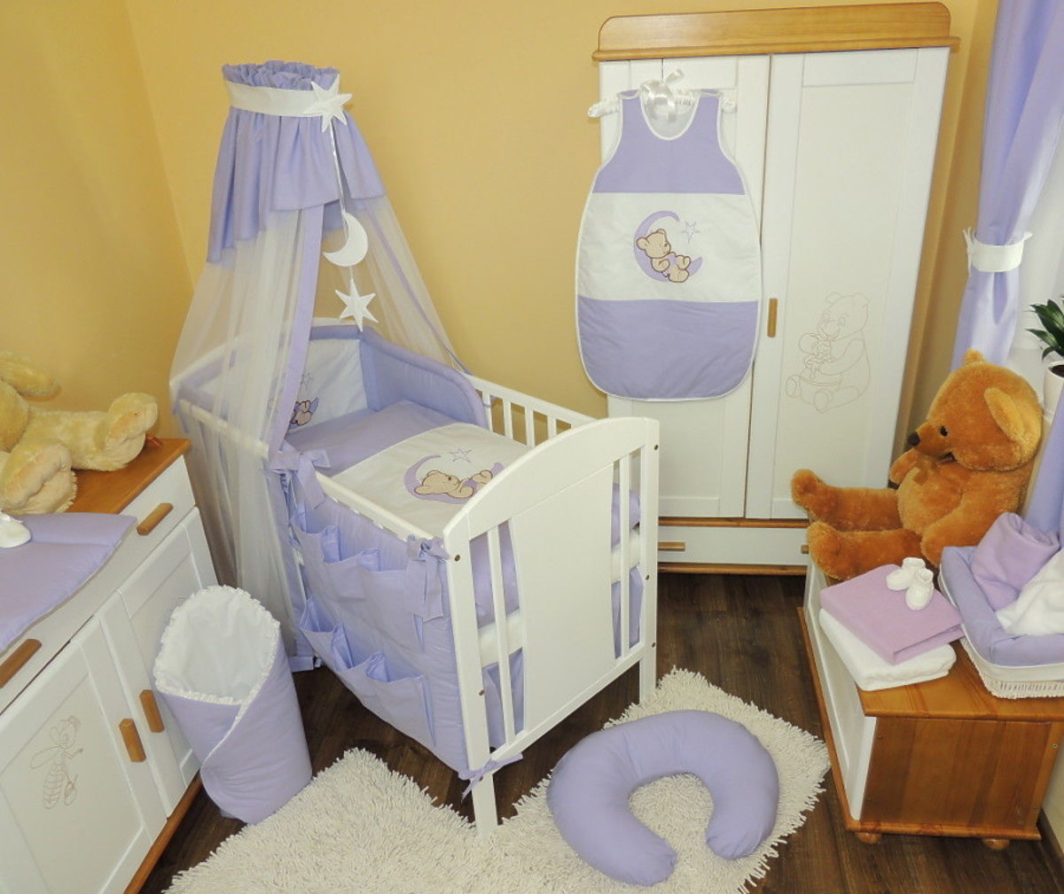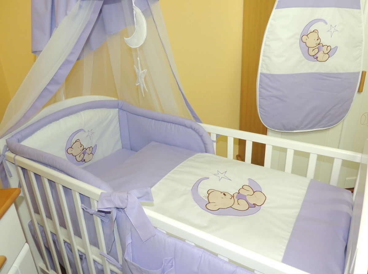 Babynabytek.cz » Lůžkoviny / Povlečení / Sady povlečení do postýlek / Povlečení do postýlky 120 x 90 - Medvídek na měsíci - fialové