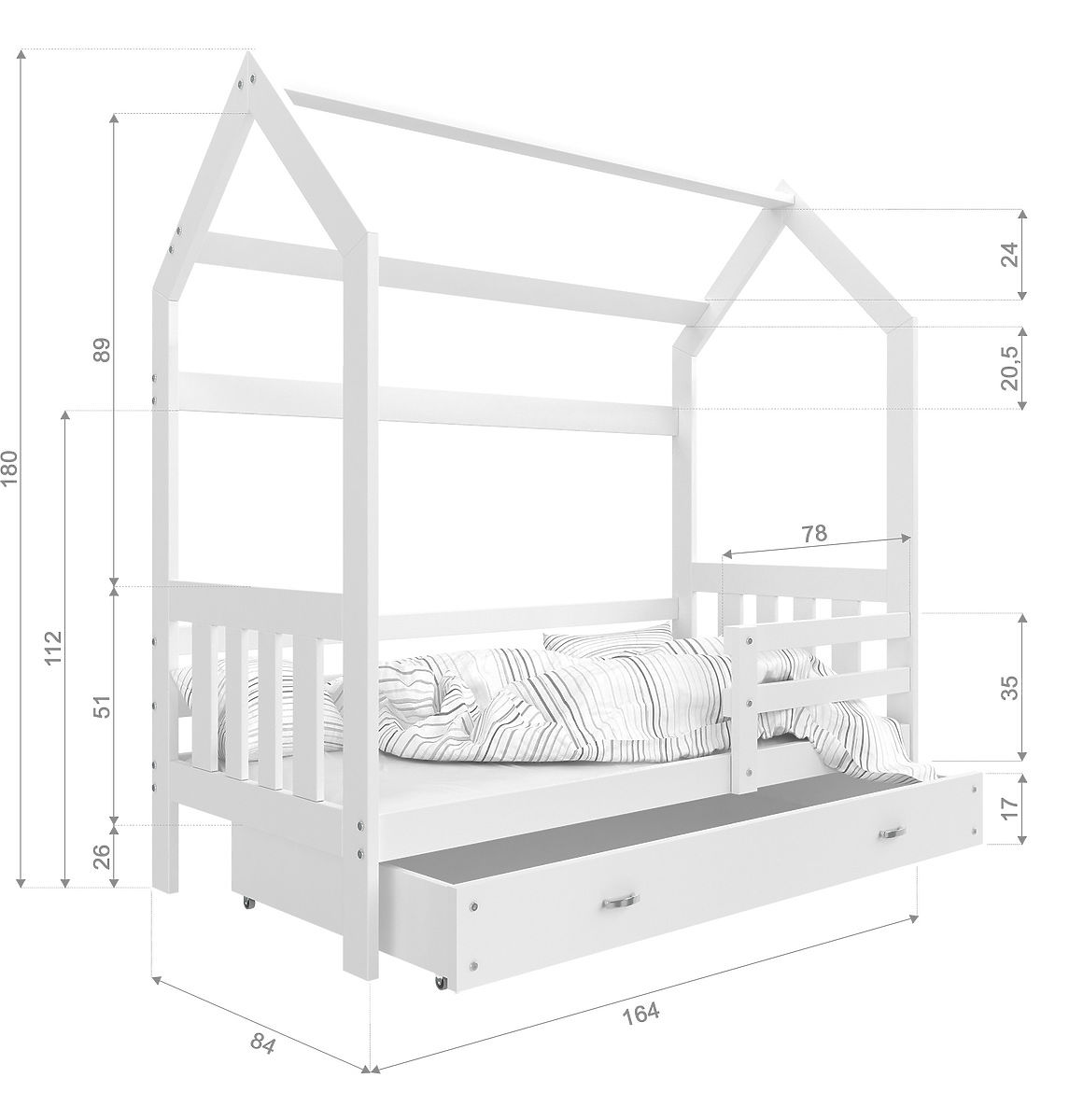 Matrace (160x80 cm, 190x80 cm) nejsou součástí postele, naleznete je v kategorii DĚTSKÉ MATRACE.