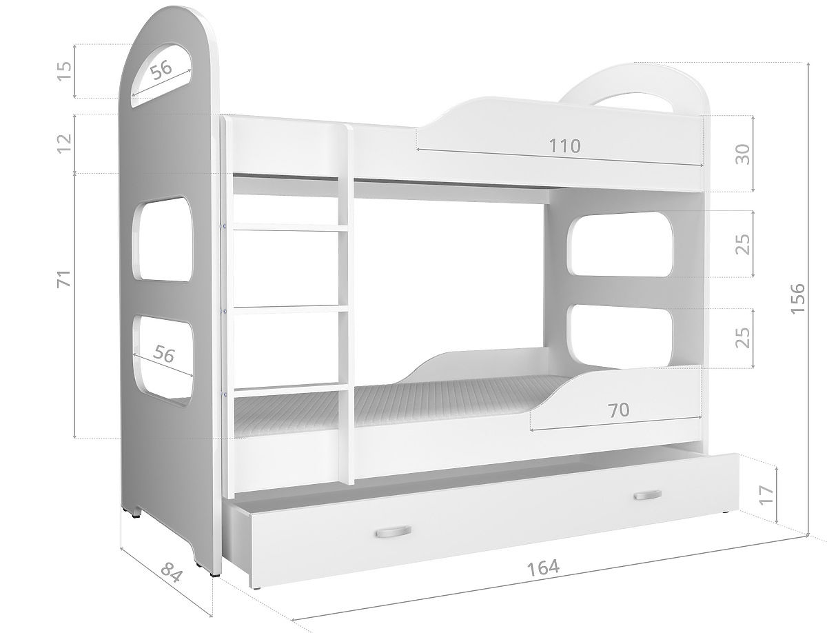 Moderní bílo-šedá patrová postel do dětského pokoje je velmi praktická a to i díky prostornému úložnému prostoru. Vlastnosti:- šetří místo- moderní design- .. více
