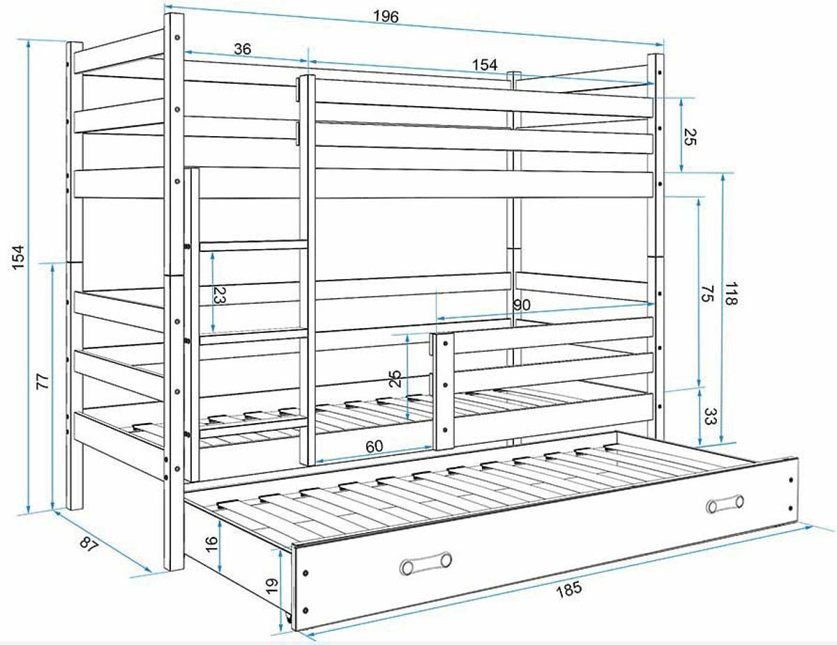 | Provedení postele: | patrové, se zábranou, s úložným prostorem, s matrací a roštem, s matrací, s roštem, s přistýlkou, bez potisku |