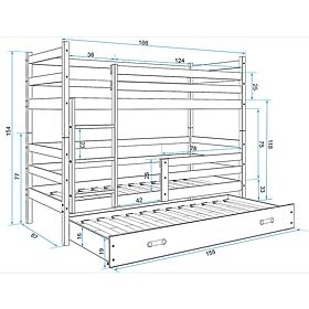 Praktická bílá patrová postel pro 3 děti se zábranou do dětského pokoje je ideální volbou pro sourozence. Vlastnosti:- žebřík je univerzální, při montáži si .. více