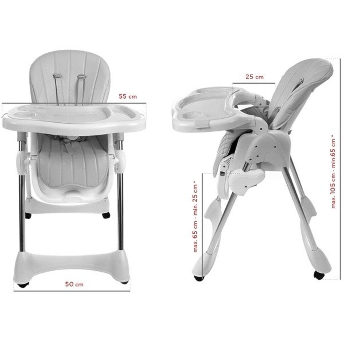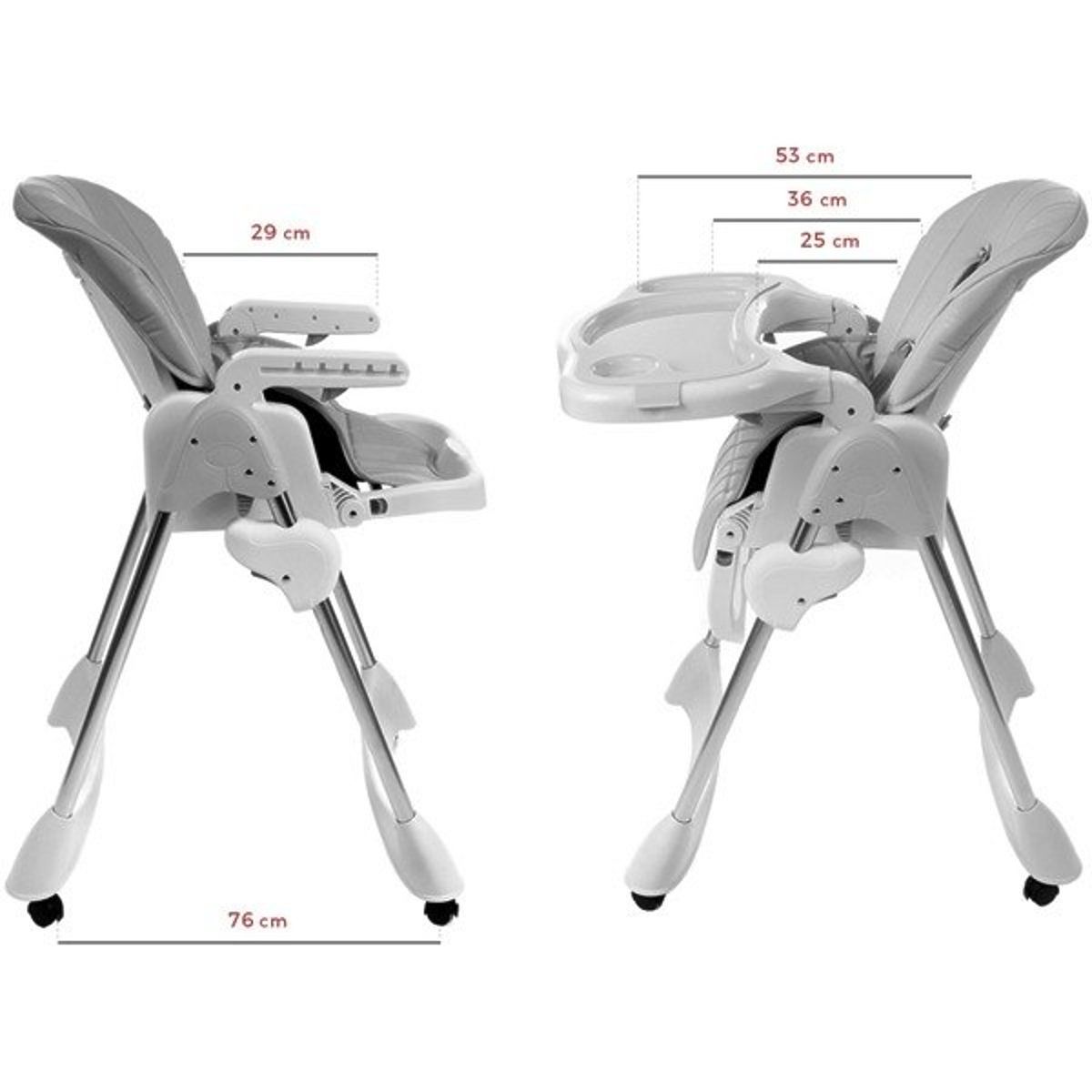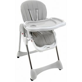 Moderní design, kvalitní zpracování a kvalita použitých materiálů to vše splňuje skládací jídelní židlička Luxa v šedém provedení, kterou lze po používat i jako lehátko.