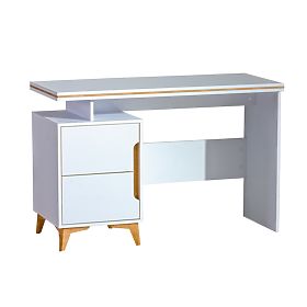 Stylový psací stůl do dětského nebo studentského pokoje v moderní barevné kombinaci bílé a přírodního odstínu horský jasan.
