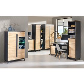 Stylový psací stůl do dětského nebo studentského pokoje v moderní barevné kombinaci šedé a přírodního odstínu horský jasan. Vlastnosti:- zásuvky s tichým .. více
