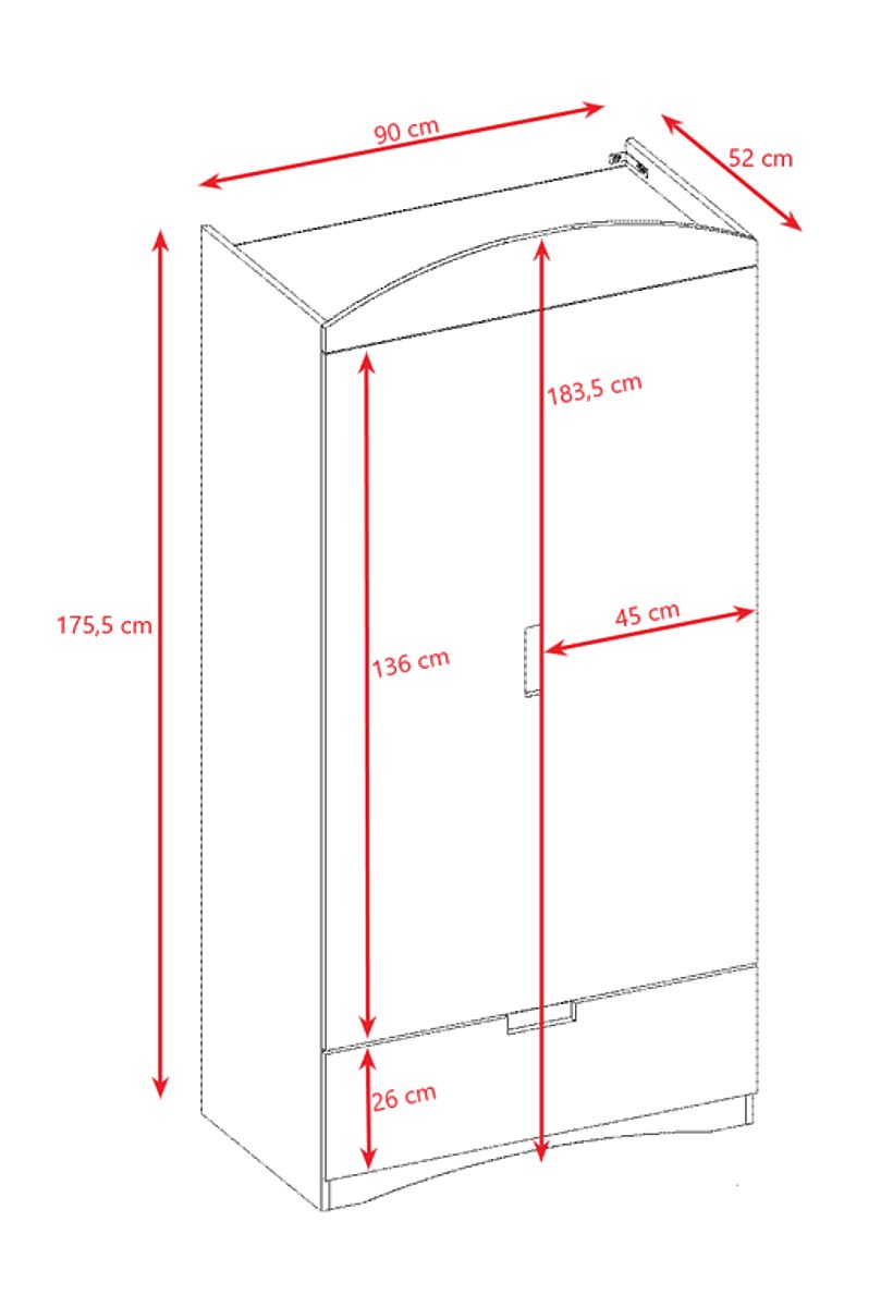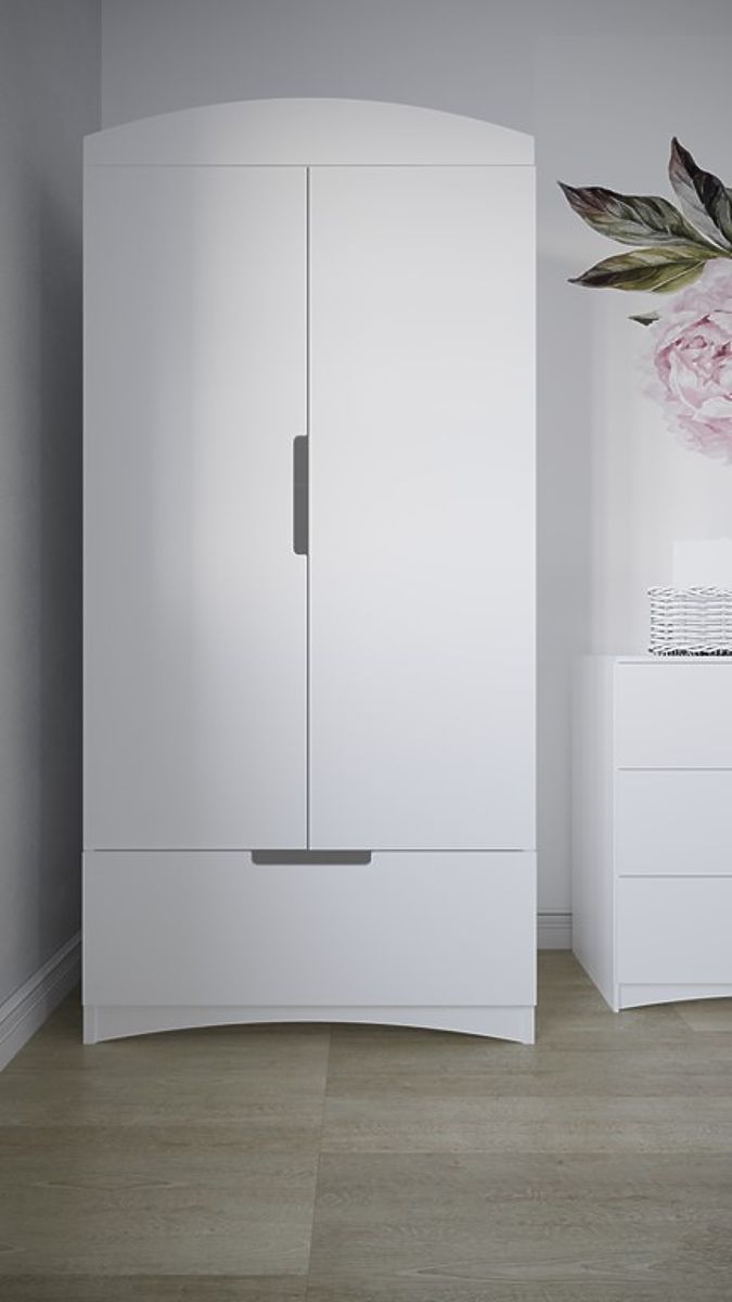 Bílá prostorná skříň do dětského pokoje zaujme svou jednoduchostí se zajímavými prvky jako jsou otvory na prsty v šuplíku a oblouk ve spodní a horní části .. více