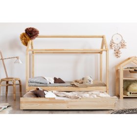 Postel ve tvaru domku s úložným prostorem v jednoduchém designu je vhodná nejen ke spánku, ale díky pevné a masivní konstrukci také ke hře a dovádění během dne.