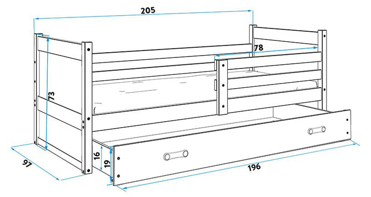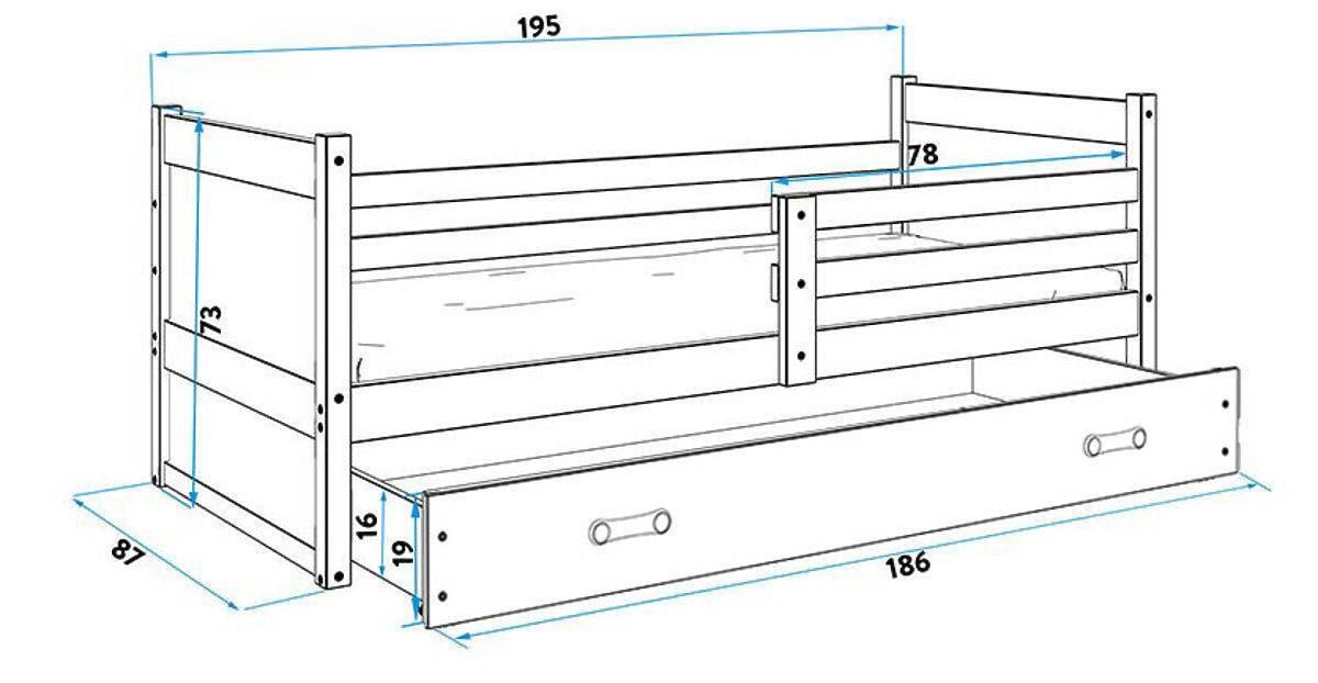 | Provedení postele: | se zábranou, s úložným prostorem, s matrací a roštem, s matrací, s roštem, bez potisku |