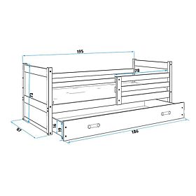 Jednoduchá bílo-růžová postel Rocky do dětského pokoje se šuplíkem a bezpečnostní zábranou. Vlastnosti:- zábrana je univerzální, při montáži si určíte, na .. více