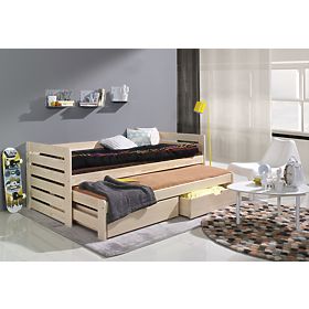 Dvojlůžko z borovicového dřeva lakované třemi vrstvami laku. Všechny postele vlastní certifikát "Institutu technologie dřeva v Poznani", který je pro prodej patrových postelí nutností v EU.