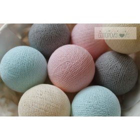 Nádherná girlanda z úsporných a bezpečných LED žárovek a bavlněných kuliček v nádherných pastelových barvách.