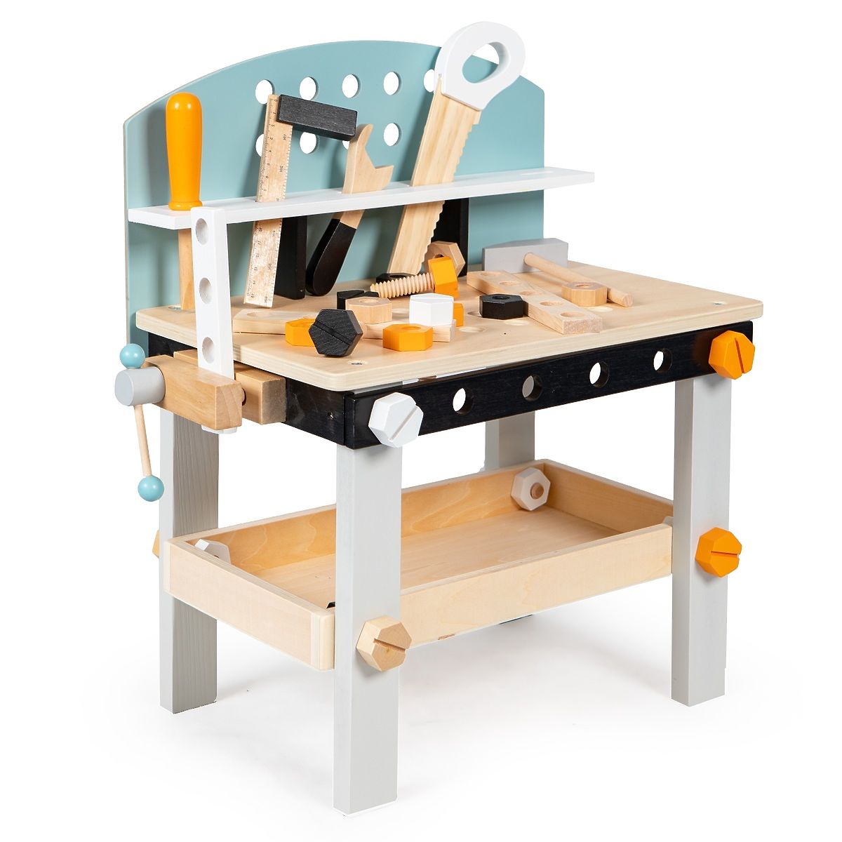 Pro kluky, kteří si rádi hrají na domácí kutili je ideální volbou barevný dřevěný ponk s bohatou výbavou.