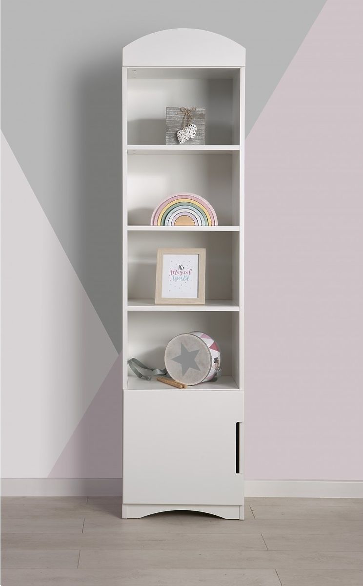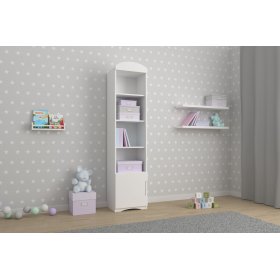 Krásný a moderní policový regál s dvířkami v bílé barvě bude praktickým kouskem do každého dětského interiéru a poslouží všude tam, kde potřebujete získat úložný prostor.