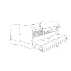Dětská postel nabízí maximální bezpečí díky zaobleným hranám, o které se děti neporaní. Před nepříjemným pádem z postele dítě ochrání ochrání snímatelná zábrana o délce 100 cm.
