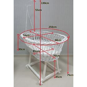 Proutěný koš pro miminko se stane praktickou a krásnou ozdobou dětského pokojíčku. Koš stojí na stabilní dřevěné konstrukci osazené pojízdnými kolečky s možností zabrzdění. Součástí je také bohaté příslušenství.