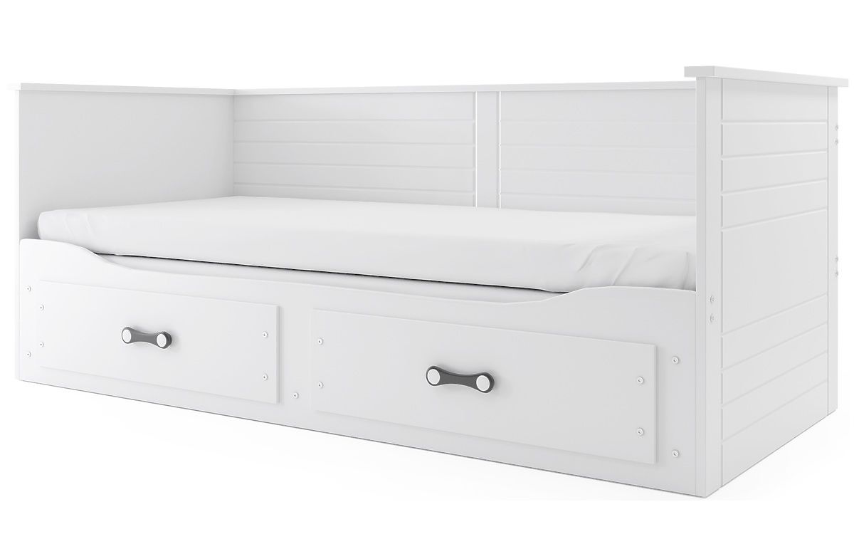 Rozkládací bílá postel HERMES se zvýšenou zádovou deskou je ideální volbou do dětského pokoje pro 2 děti. Díky rozměru matrace 200x80 cm získáte postel, která .. více
