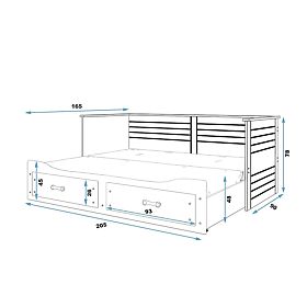 Při rozložení obou lůžek získáte ložnou plochu 160x200 cm. Postel je vhodná do dětského pokoje ve skandinávském stylu. Postel se zády využijete jako jednolůžko, dvoulůžko nebo pohovku. Přes den jsou 2 matrace položené na sobě, před spánkem jednoduše vysunete spodní díl postele a horní matraci umístíte na rošt.