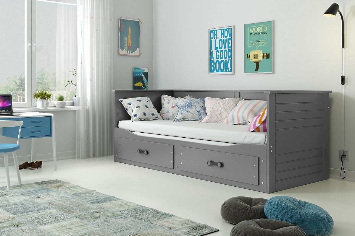 Rozkládací šedá postel HERMES se zvýšenou zádovou deskou je ideální volbou do dětského pokoje pro 2 děti. Díky rozměru matrace 200x80 cm získáte postel, která je vhodná pro děti až do dospělosti. Možná si ji dokonce oblíbíte vy sami.