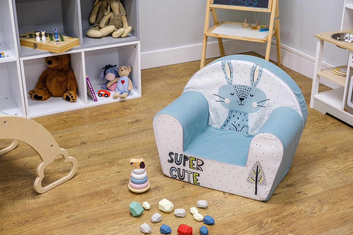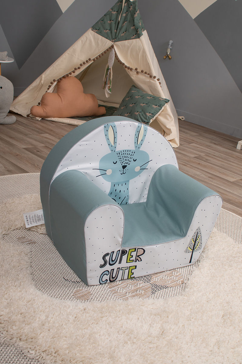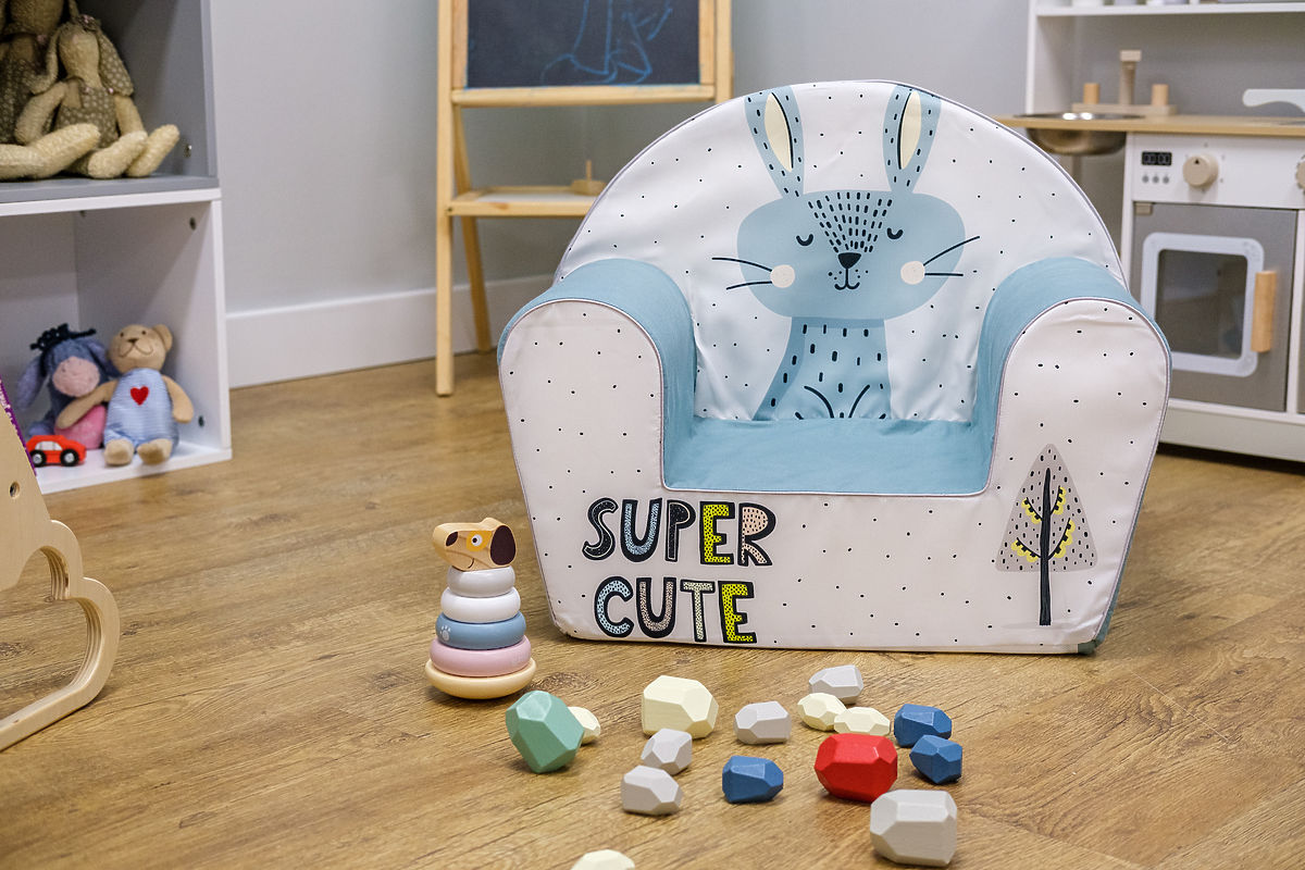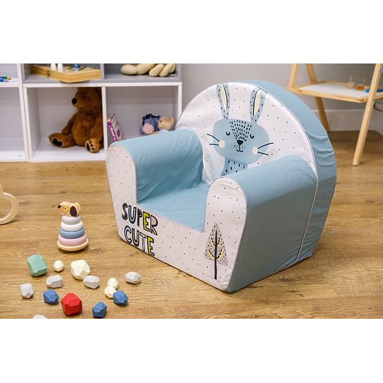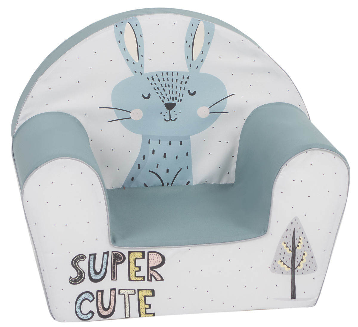 Barevné křesílko s motivem snícího zajíce. Roztomilé křesílko s obrázkem a nápisem SUPER CUTE. Dětské křesílko je vyrobeno z měkoučké a lehounké pěny. Díky tomu máte jistotu, že je bezpečné a praktické pro každodenní používání.