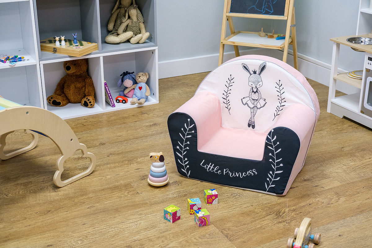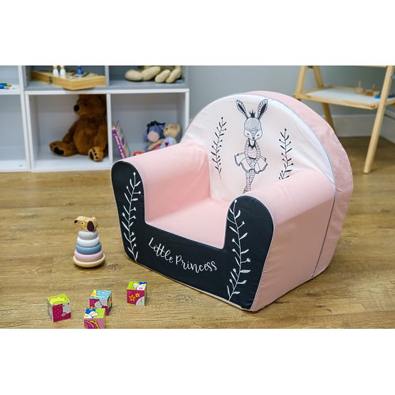 Barevné křesílko s motivem zaječí baletky. Oživte pokojíček díky kombinaci bílé a růžové textilie, která se holčičkám zalíbí na první pohled. Na přední straně křesílka je krásný nápis Little Princess. Dětské křesílko je vyrobeno z měkoučké a lehounké pěny. Díky tomu máte jistotu, že je bezpečné a praktické pro každodenní používání.